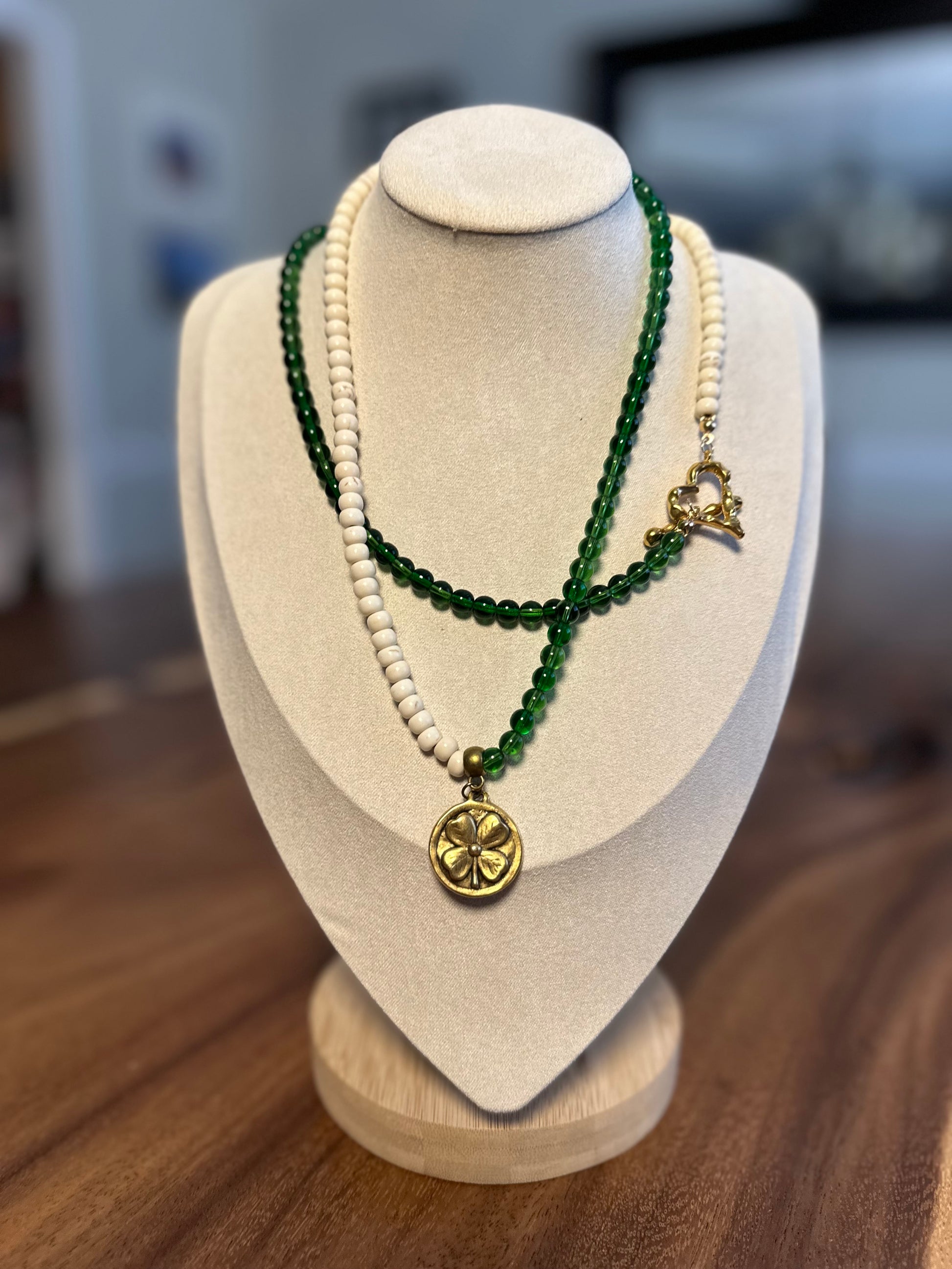 - Antique gold shamrock/Claddagh pendant