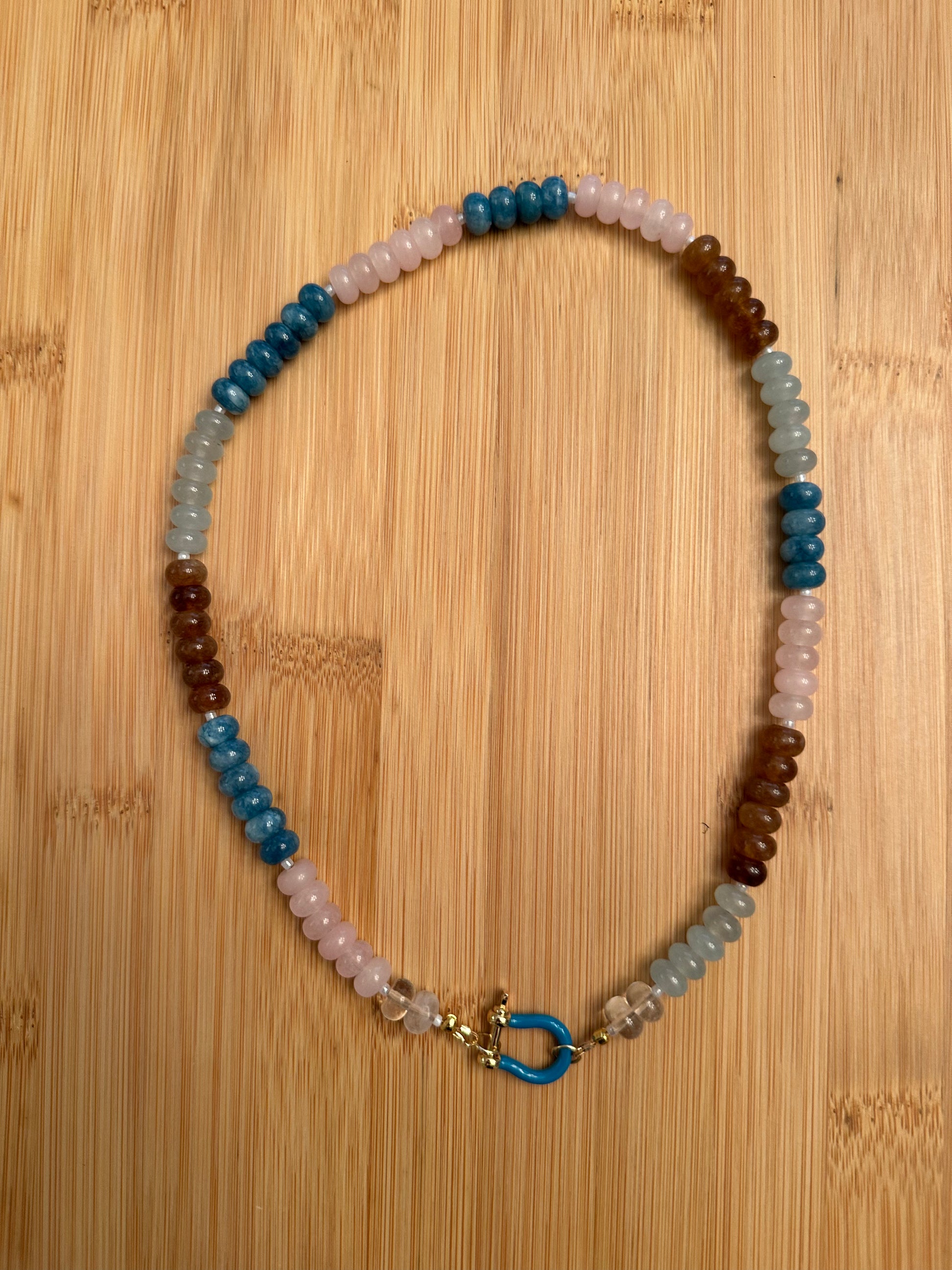 Inspired by the easy comfort of coastal autumn days, Cozy Sweater captures the feeling of golden light and slow mornings. Smooth jade beads in muted earth and sea tones pair with delicate pale spacers and gold-filled findings — a harmony of warmth and calm.