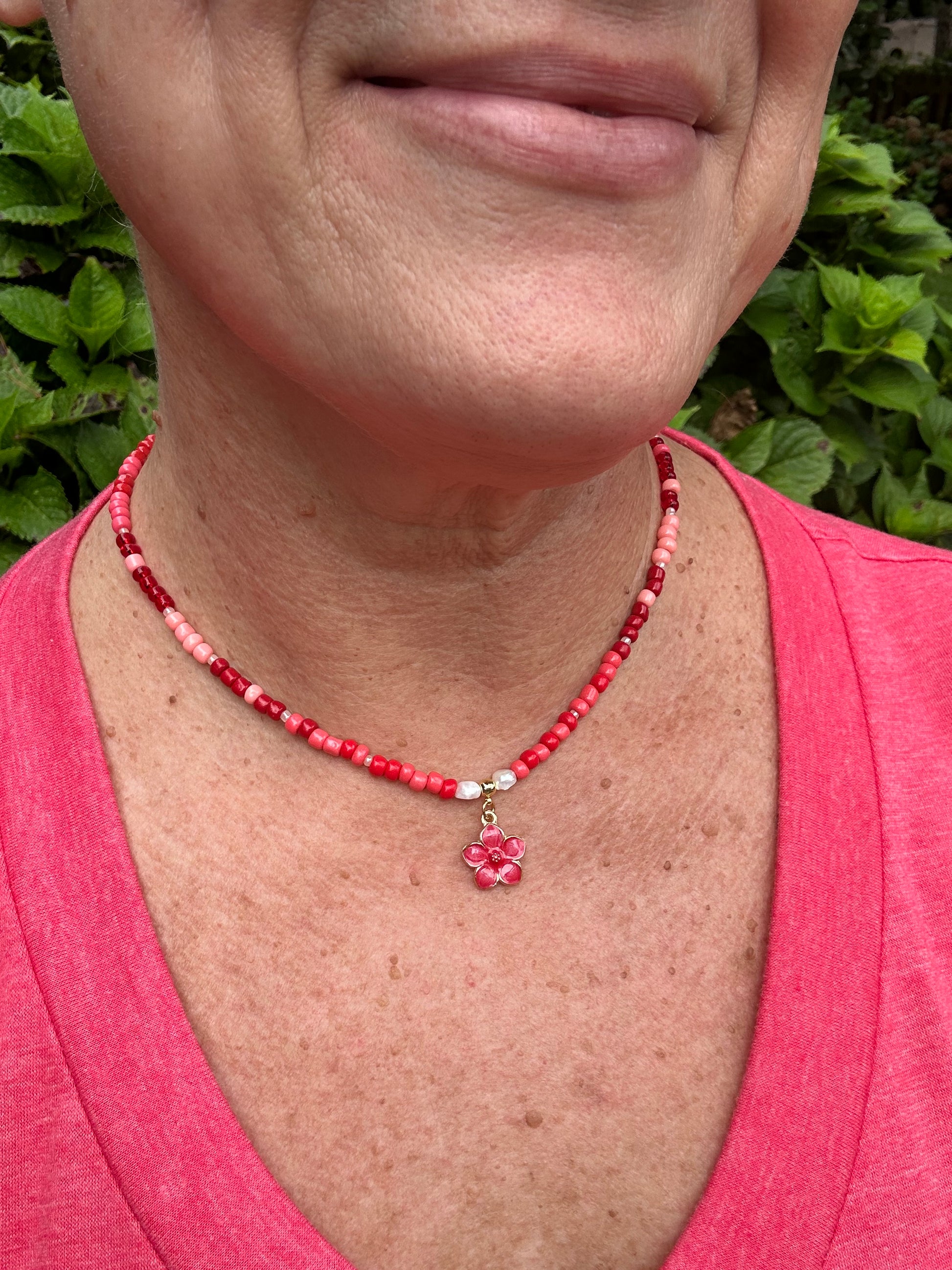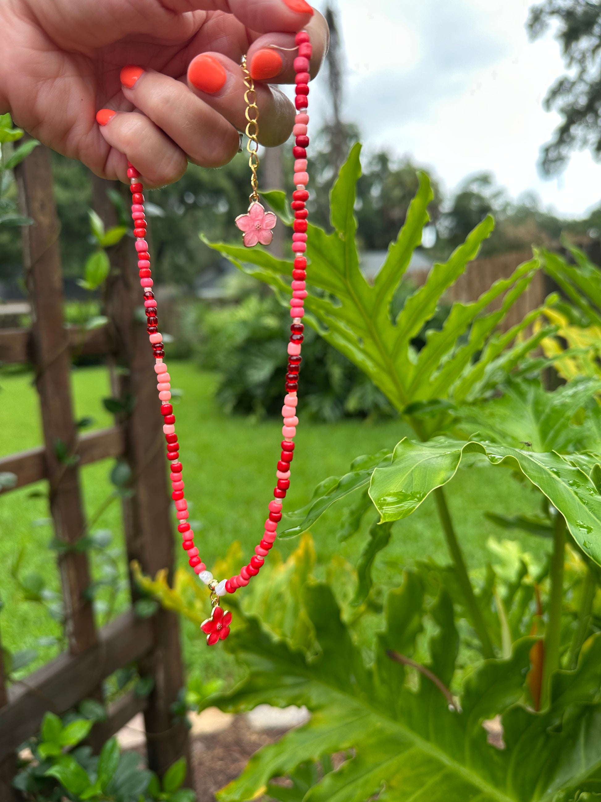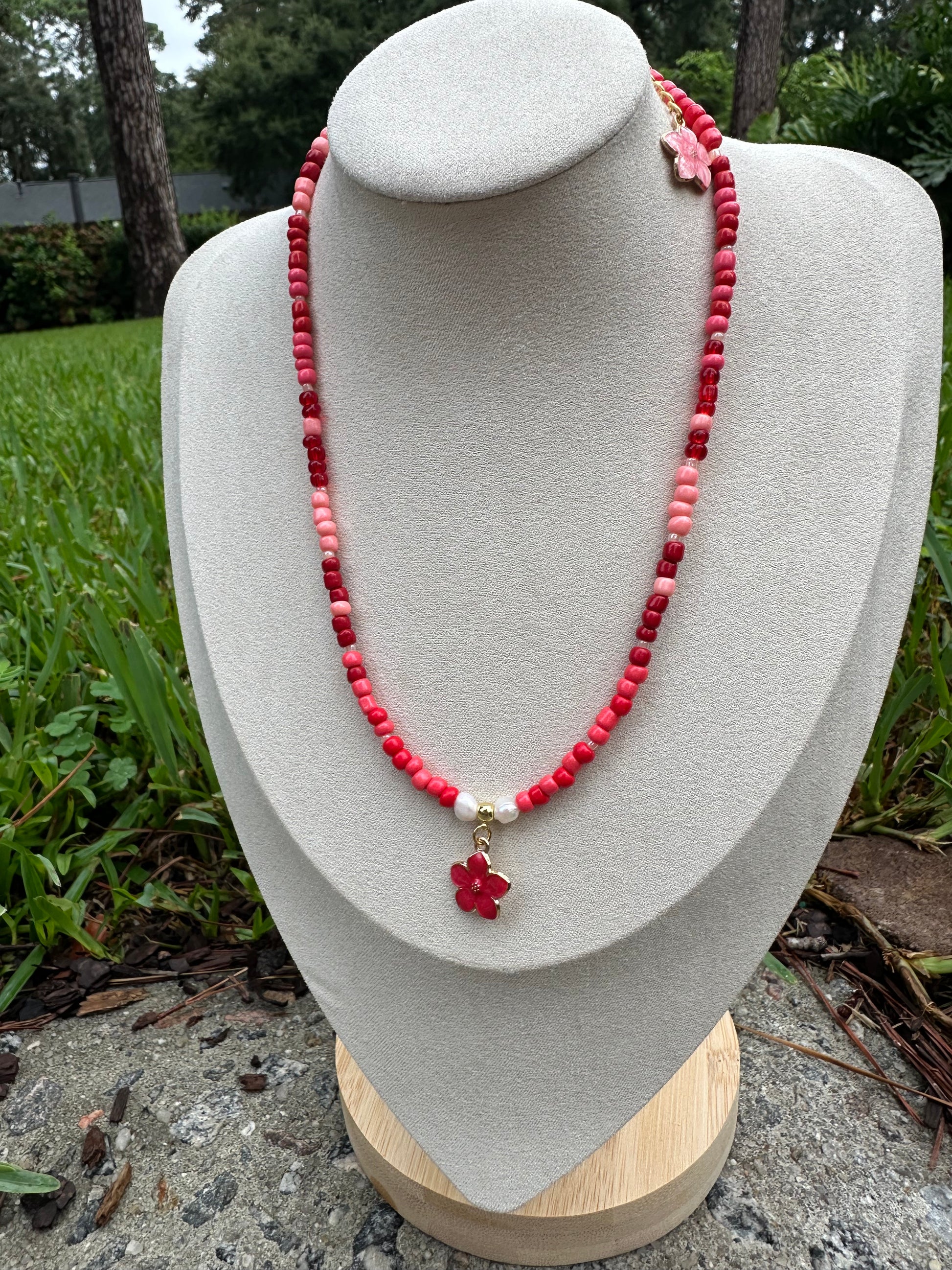 Vibrant and graceful, Isle Hibiscus was inspired by the blossoms that thrive in warm coastal air. Shades of coral, blush, and gold bring to life a flower in full bloom, radiant under island light. This necklace carries the joy of southern gardens — alive, sunlit, and unforgettable.